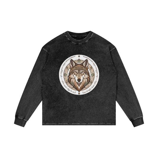 MANDALA WOLF - Acid Wash Oversize Long Sleeve T-Shirt