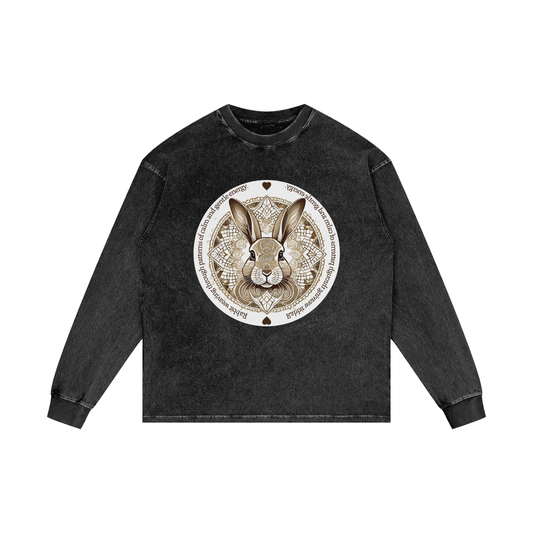 MANDALA RABBIT - Acid Wash Oversize Long Sleeve T-Shirt