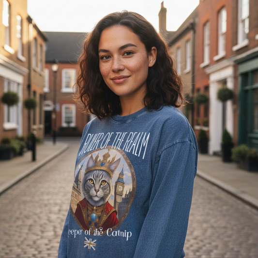 KEEPER OF THR CATNIP, CAT - Acid Wash Oversize Long Sleeve T-Shirt