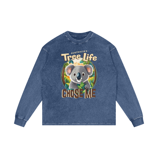 TREE LIFE CHOSE ME! KOALA -Acid Wash Oversize Long Sleeve T-Shirt