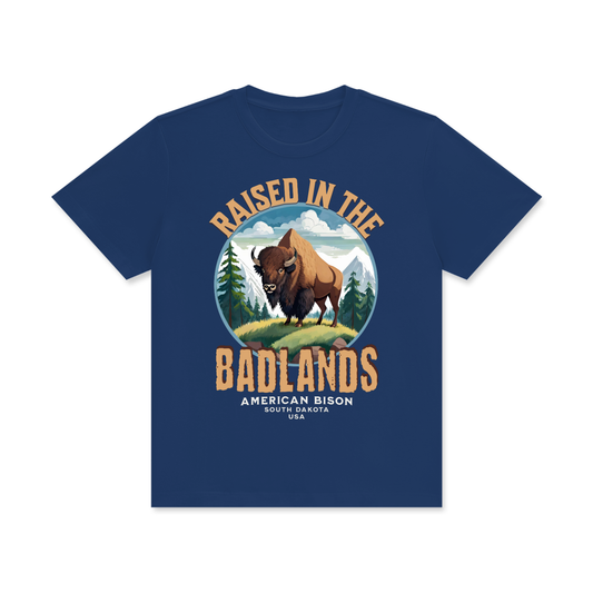 RAISED IN THE BADLANDS, BISON - Unisex Classic Crew Neck Cotton T-Shirt in Black