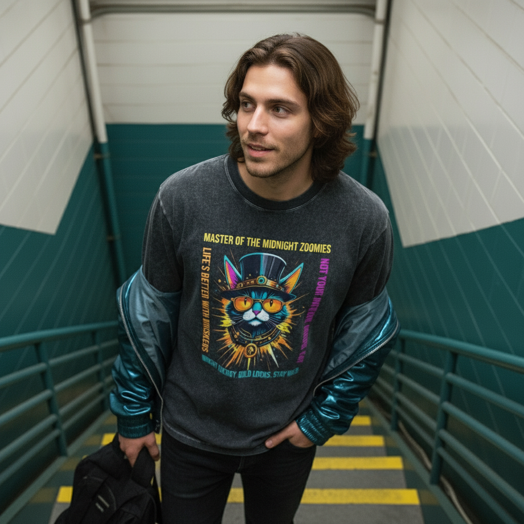 Zoomies Master Cat Acid Wash Oversize Long Sleeve T-Shirt